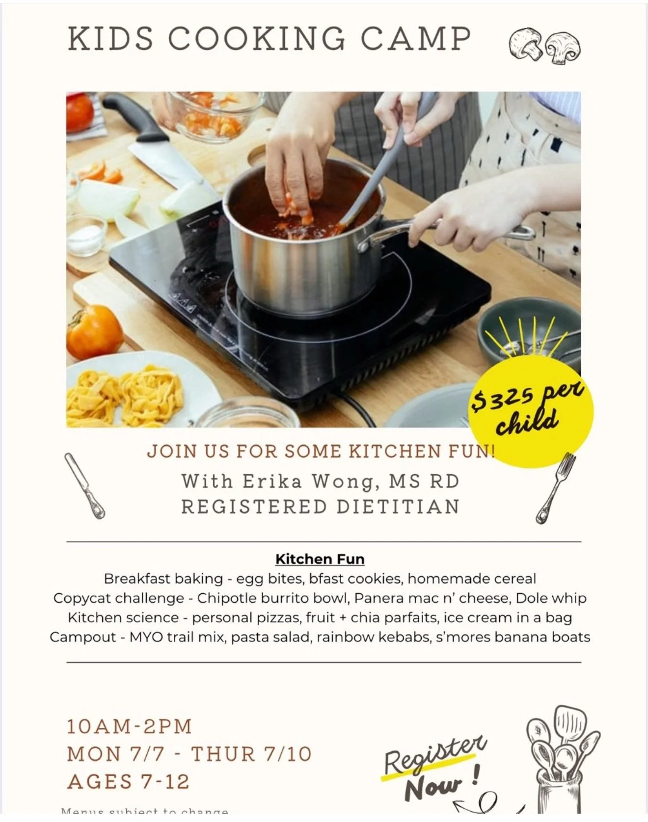 A hands-on culinary series for our youngest chefs. From feisty fiesta bites to pizza; each Friday features a new lineup of seasonal dishes.